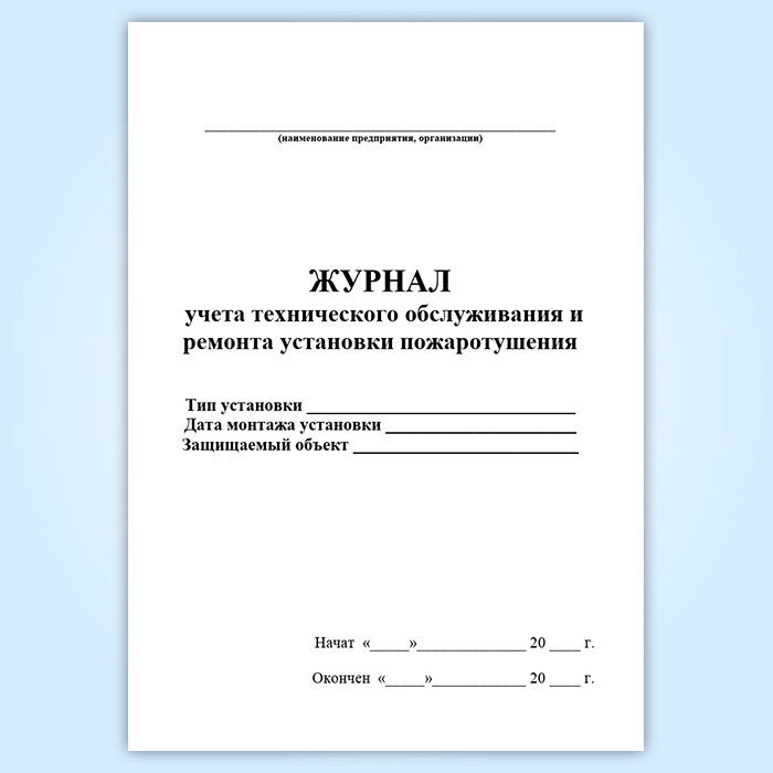 Журнал учета технического обслуживания и ремонта установки пожаротушения в Чите купить