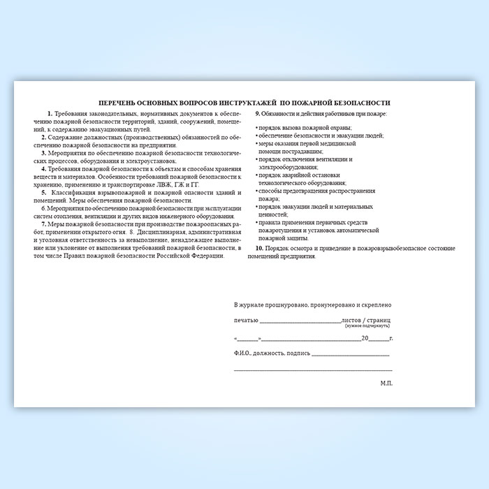 Журнал регистрации инструктажей по пожарной безопасности в Чите купить