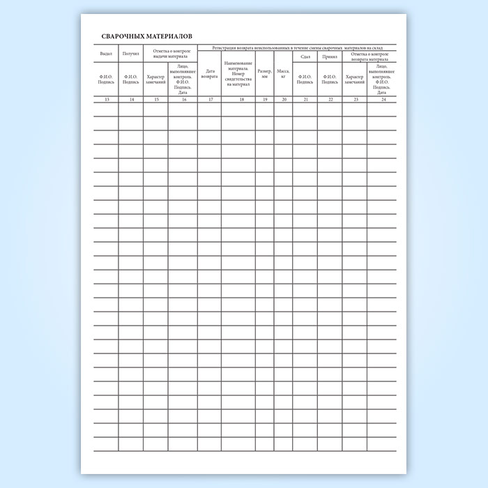 Журнал учета выдачи в производство и возврата неиспользованных сварочных материалов в Чите купить