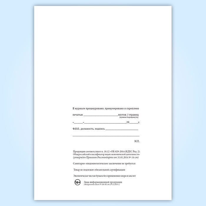 Вы получаете печатную продукцию прошнурованной и c местом для вашей печати в соответствии с действующими нормативными документами:
