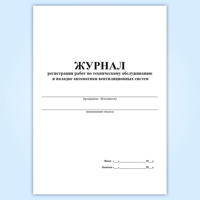 Журнал регистрации работ по техническому обслуживанию и наладке автоматики вентиляционных систем в Чите купить