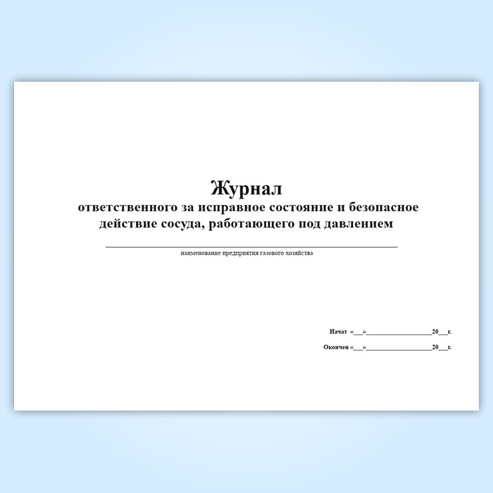 Журнал ответственного за исправное состояние и безопасное действие сосуда, работающего под давлением в Чите купить