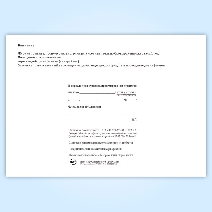 Журнал учета дезинфекций поверхностей в рамках профилактики распространения коронавирусной инфекции COVID-19 в Чите купить