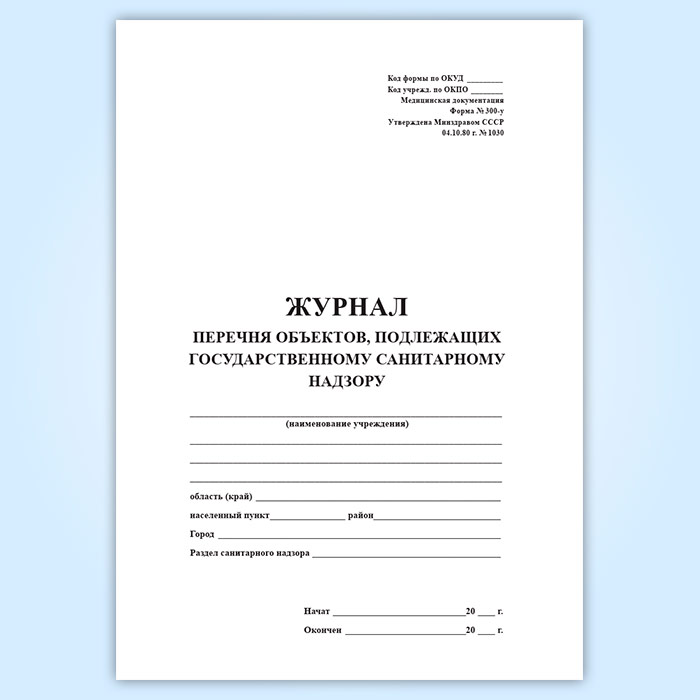 Журнал перечня объектов, подлежащих государственному санитарному надзору (форма 300/у) в Чите купить