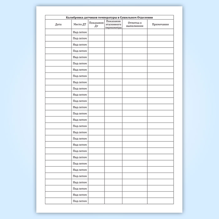 Журнал калибровки датчиков температуры в сушильном отделении в Чите купить