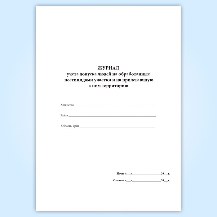 Журнал учета допуска людей на обработанные пестицидами участки и на прилегающую к ним территорию в Чите купить
