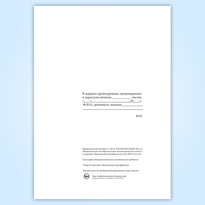 Вы получаете печатную продукцию прошнурованной и c местом для вашей печати в соответствии с действующими нормативными документами: