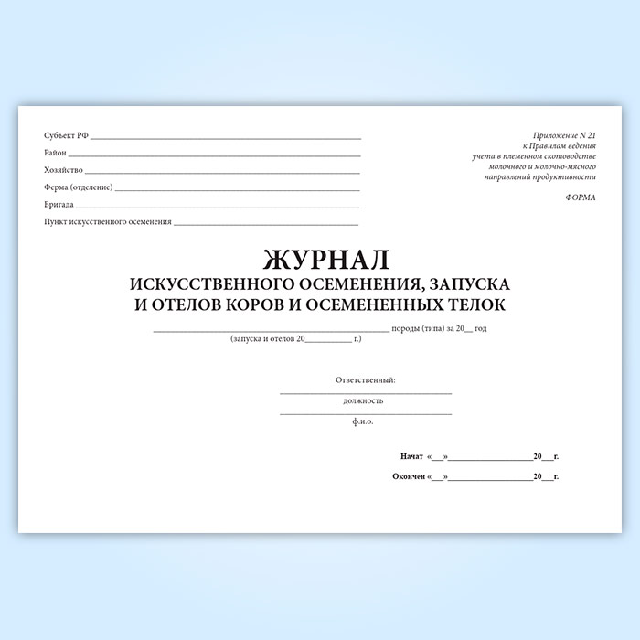 Журнал искусственного осеменения, запуска и отелов коров и осемененных телок в Чите купить