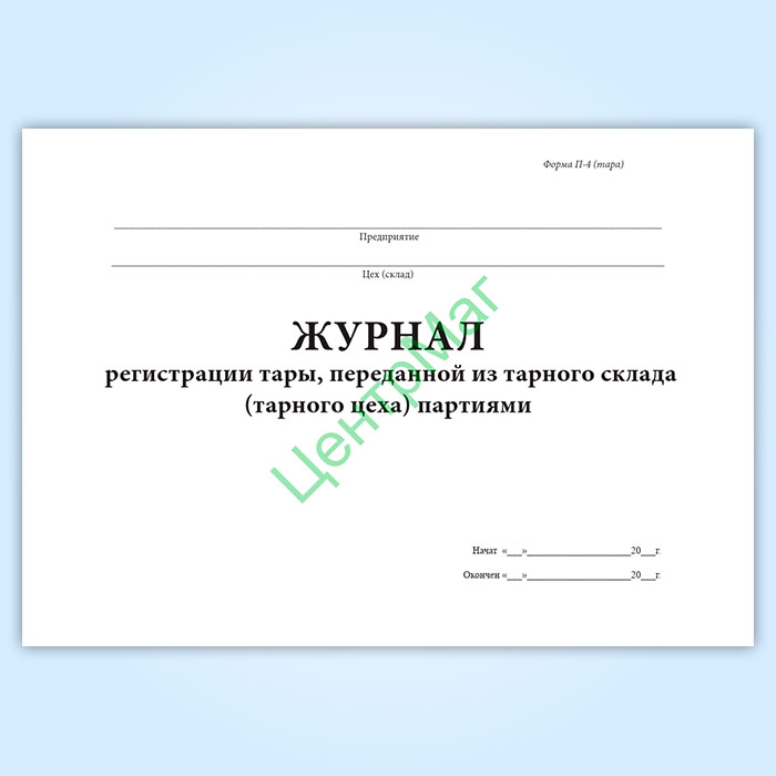 Журнал регистрации тары, переданной из тарного склада (тарного цеха) партиями (форма № П-4 тара) в Чите купить