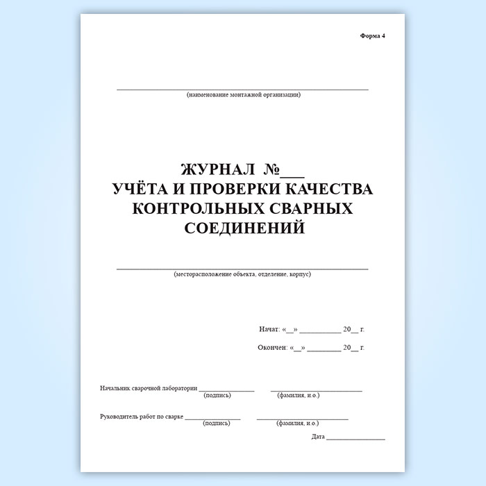 Журнал учета и проверки качества контрольных сварных соединений (форма 4) в Чите купить