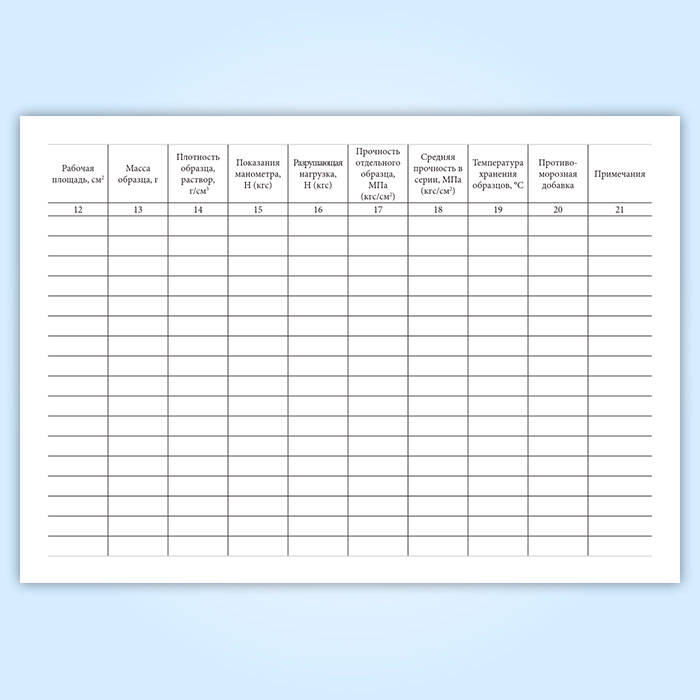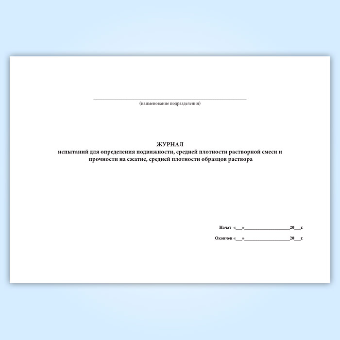 Журнал испытаний для определения подвижности, средней плотности растворной смеси и прочности на сжатие, средней плотности образцов раствора в Чите купить