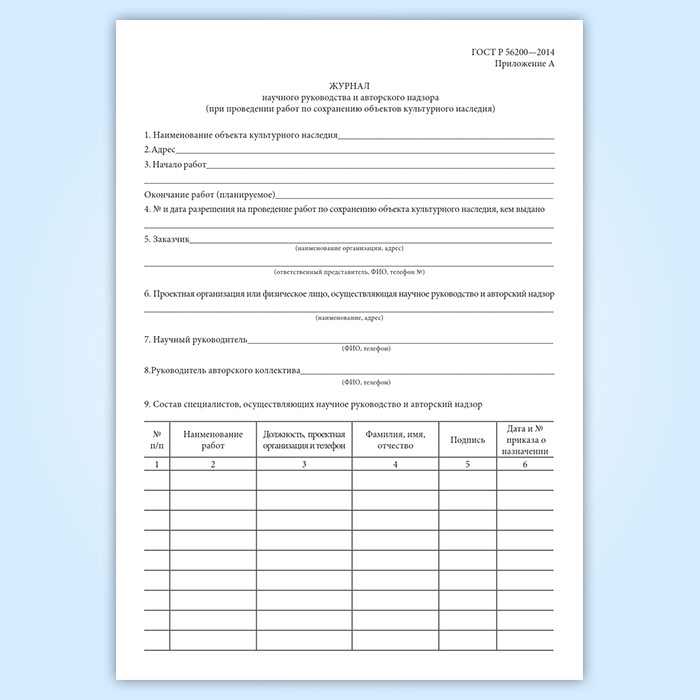 Журнал научного руководства и авторского надзора при проведении работ по сохранению объектов культурного наследия в Чите купить