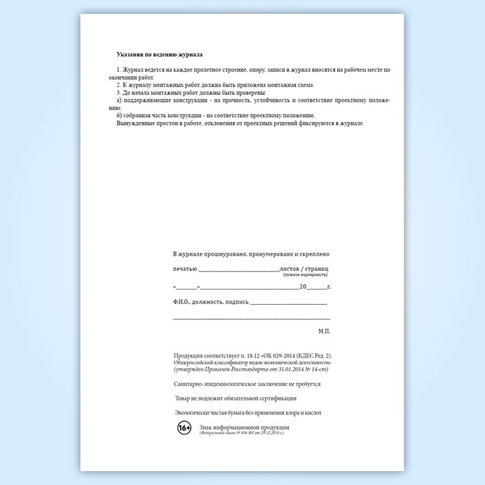 Вы получаете печатную продукцию прошнурованной и c местом для вашей печати в соответствии с действующими нормативными документами: