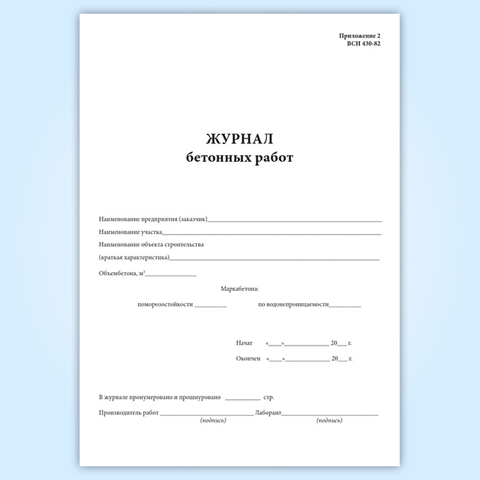 Журнал бетонных работ (ВСН 430-82) в Чите купить