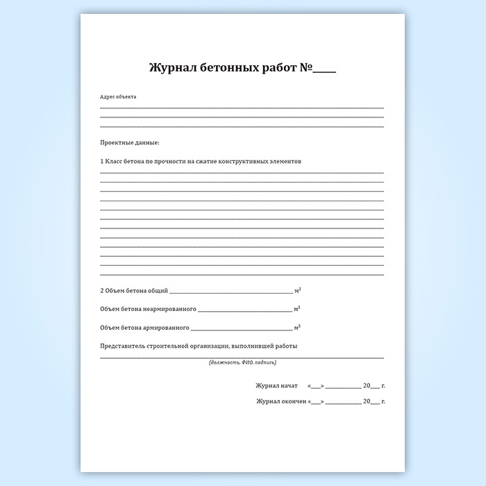 Журнал бетонных работ (форма 12.1, СП 392.1325800.2018) в Чите купить