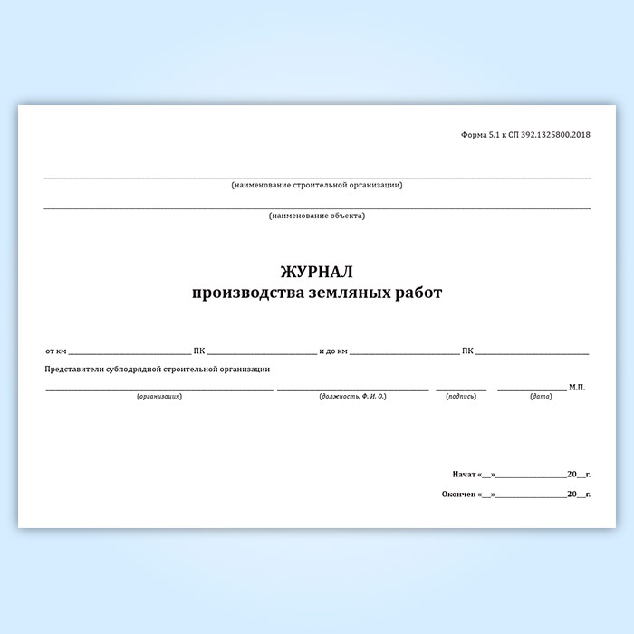 Журнал производства земляных работ (форма 5.1) в Чите купить