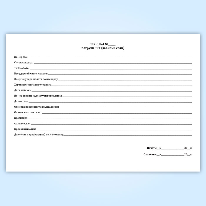 Журнал погружения (забивки свай) (форма 4.1) в Чите купить