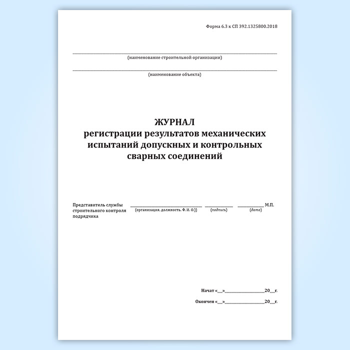 Журнал регистрации результатов механических испытаний допускных и контрольных сварных соединений (форма 6.3) в Чите купить