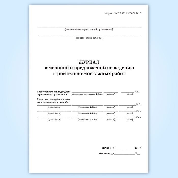 Журнал замечаний и предложений по ведению строительно-монтажных работ (форма 1.5, СП 392.1325800.2018) в Чите купить
