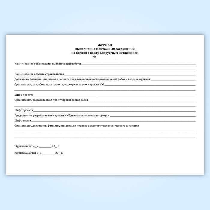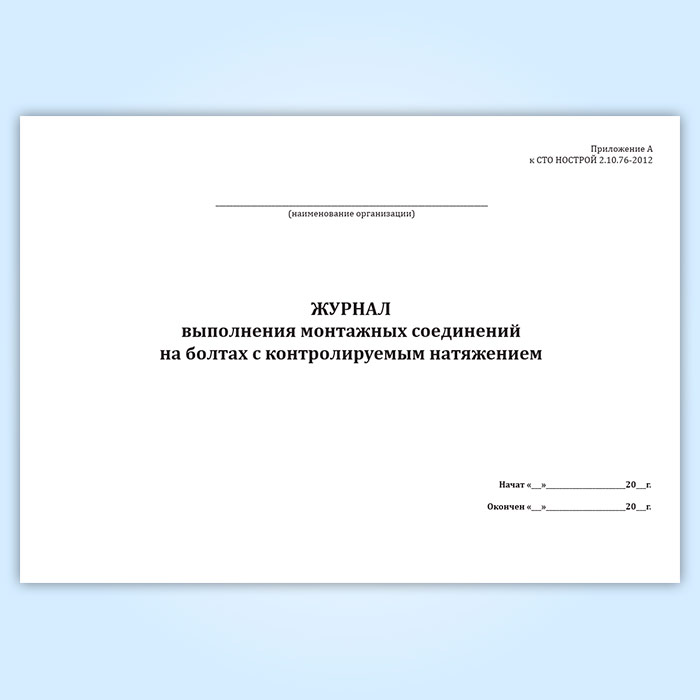 Журнал выполнения монтажных соединений на болтах с контролируемым натяжением (СТО НОСТРОЙ 2.10.76-2012) в Чите купить