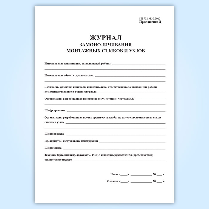 Журнал замоноличивания монтажных стыков и узлов в Чите купить