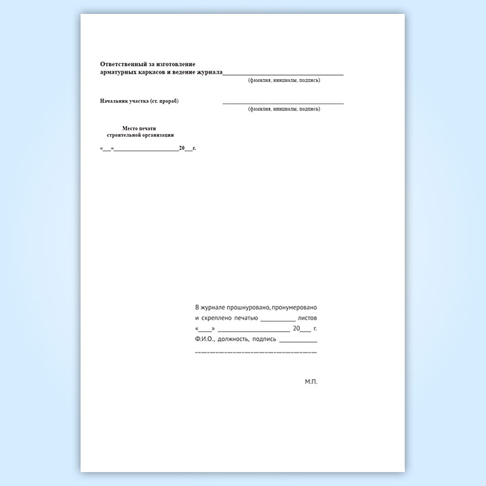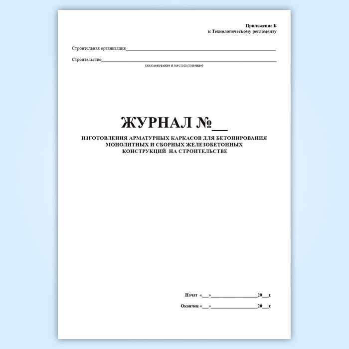 Журнал изготовления арматурных каркасов для бетонирования монолитных и сборных железобетонных конструкций на строительстве в Чите купить