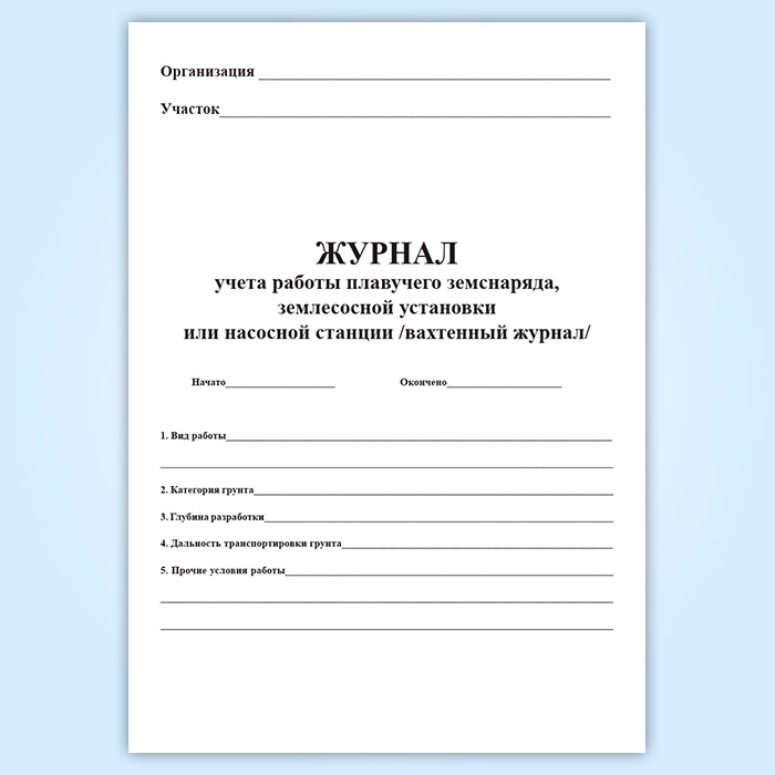 Журнал учета работы плавучего земснаряда, землесосной установки или насосной станции (вахтенный журнал) (форма ПД-3) в Чите купить