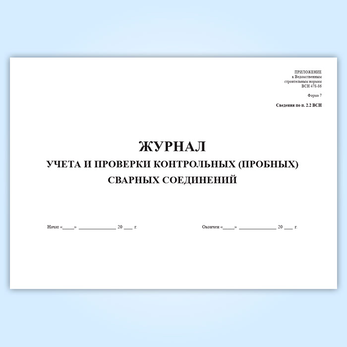 Журнал учета и проверки качества контрольных (пробных) сварных соединений (форма 7) в Чите купить