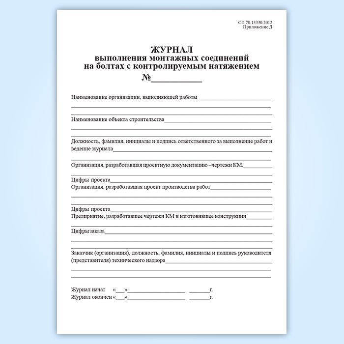 Журнал выполнения монтажных соединений на болтах с контролируемым натяжением в Чите купить