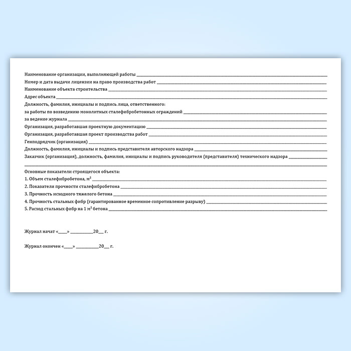 Журнал производства работ по возведению монолитных сталефибробетонных ограждений в Чите купить