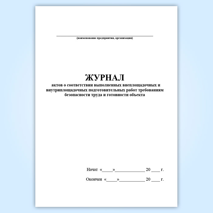 Журнал актов о соответствии выполненных внеплощадочных и внутриплощадочных подготовительных работ требованиям безопасности труда и готовности объекта в Чите купить