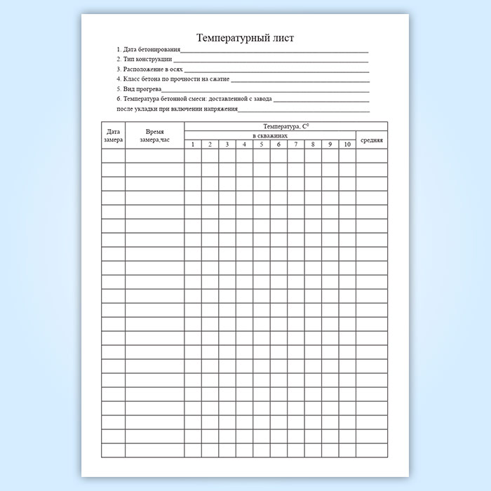 Журнал ухода за бетоном (с графиком продолжительности твердения) в Чите купить