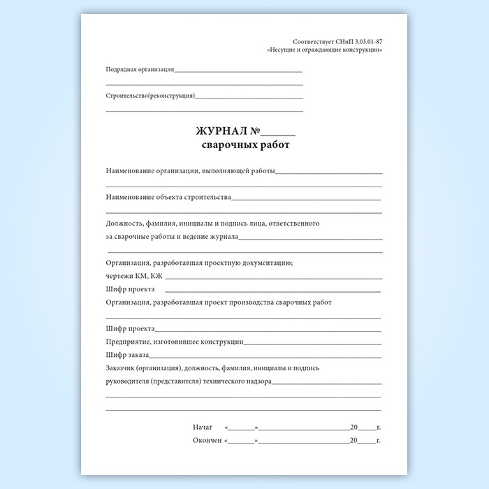 Журнал сварочных работ (СНиП 30301-87) в Чите купить