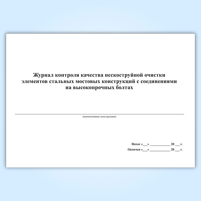 Журнал контроля качества пескоструйной очистки элементов стальных мостовых конструкций с соединениями на высокопрочных болтах в Чите купить