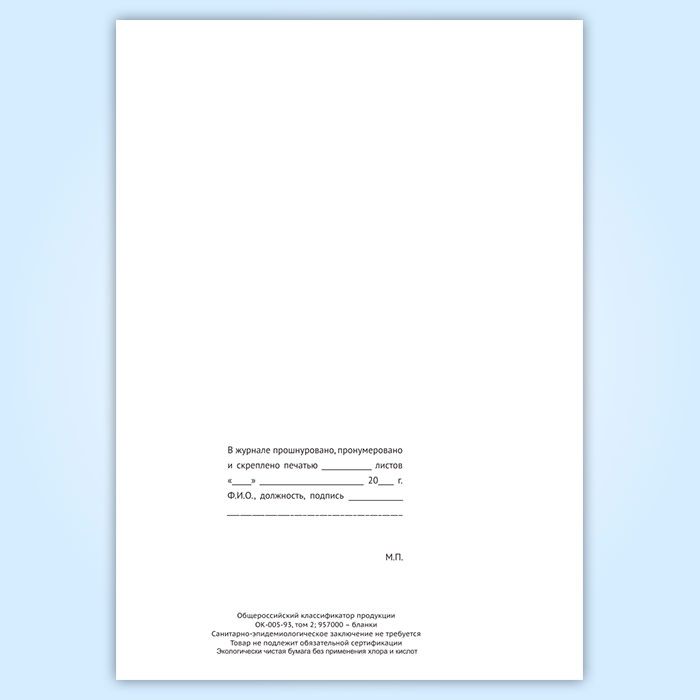 Вы получаете печатную продукцию прошнурованной и c местом для вашей печати в соответствии с действующими нормативными документами: