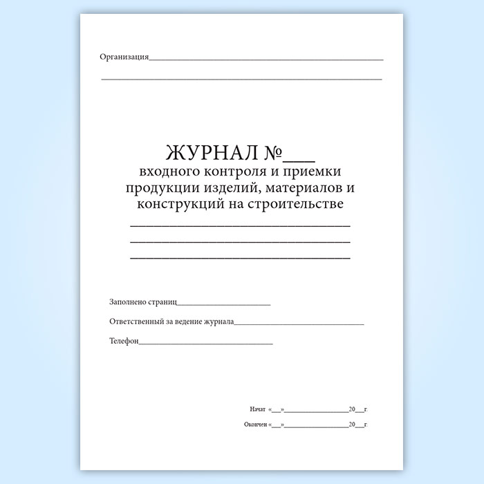 Журнал входного контроля и приемки продукции, изделий, материалов и конструкций на строительстве в Чите купить