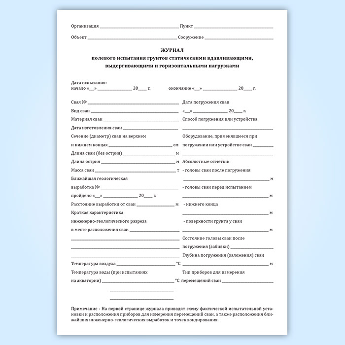 Журнал полевого испытания грунтов статическими вдавливающими, выдергивающими и горизонтальными нагрузками в Чите купить