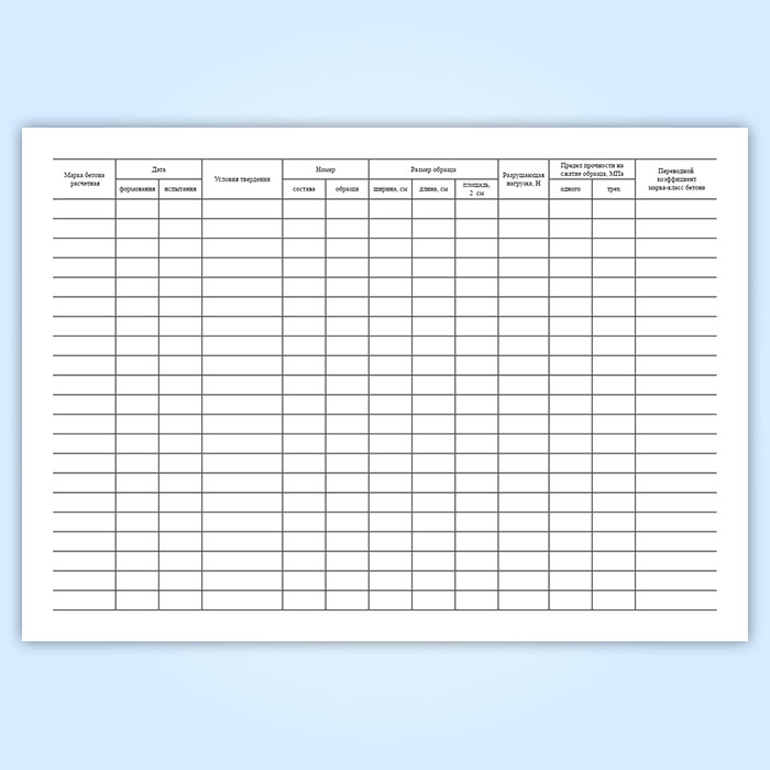 Журнал результатов по определению прочности бетона эталонным молотком Кашкарова в Чите купить