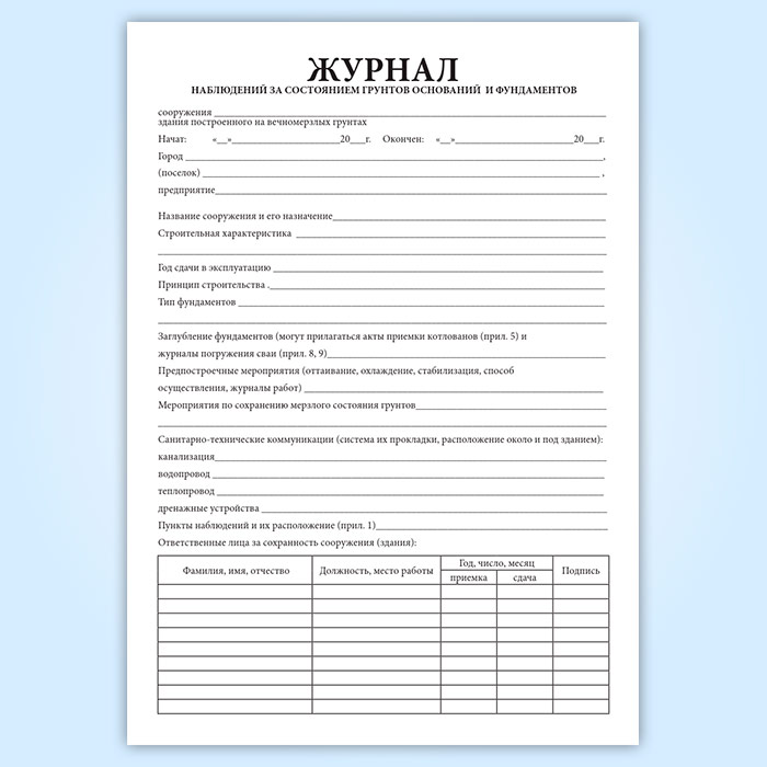 Журнал наблюдений за состоянием грунтов оснований и фундаментов в Чите купить