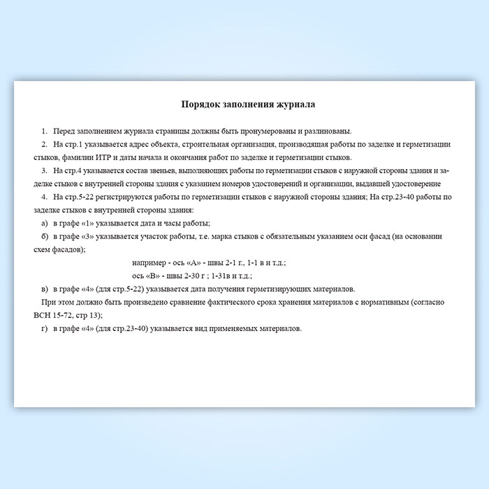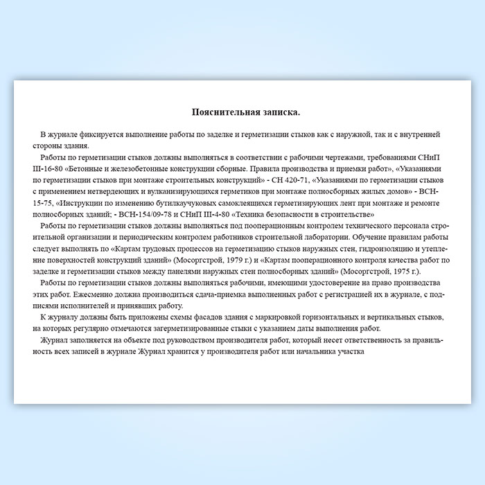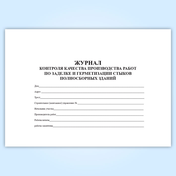 Журнал контроля качества производства работ по заделке и герметизации стыков полносборных зданий в Чите купить