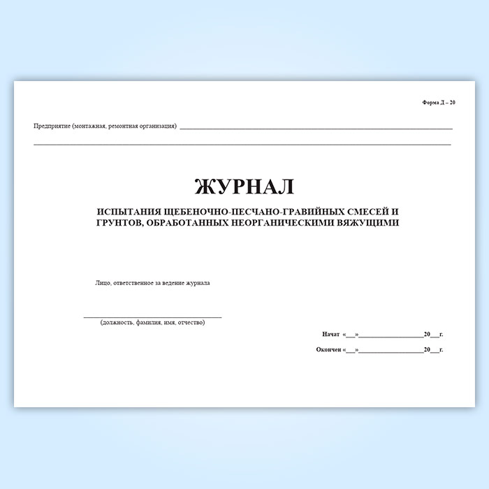 Журнал испытания щебеночно-песчано-гравийных смесей и грунтов, обработанных неорганическими вяжущими в Чите купить