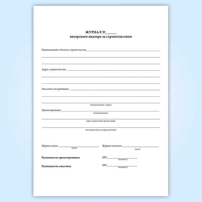 Журнал авторского надзора за строительством (СП 246.1325800.2016) в Чите купить