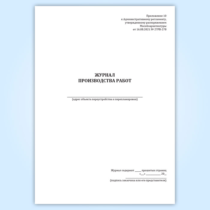 Журнал производства работ (Распоряжение Мособлархитектуры МО от 16.08.2021 N 27РВ-278) в Чите купить