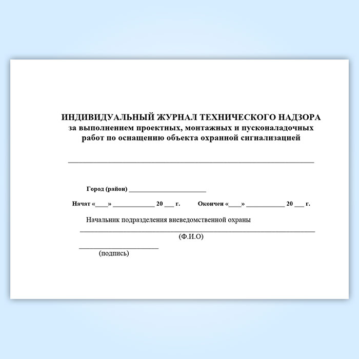 Индивидуальный журнал технического надзора за выполнением проектных, монтажных и пусконаладочных работ по оснащению объекта охранной сигнализацией в Чите купить