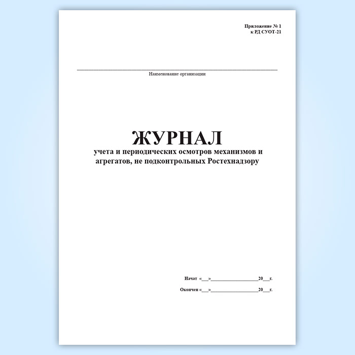 Журнал учета и периодических осмотров механизмов и агрегатов, не подконтрольных Ростехнадзору в Чите купить
