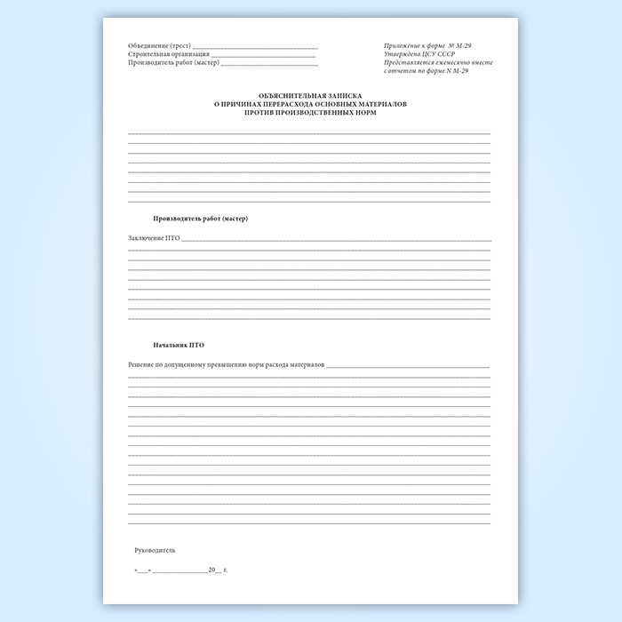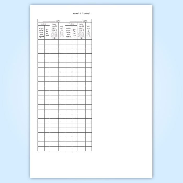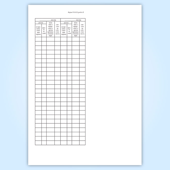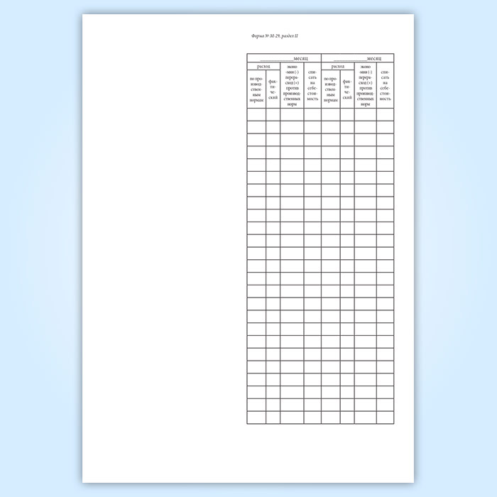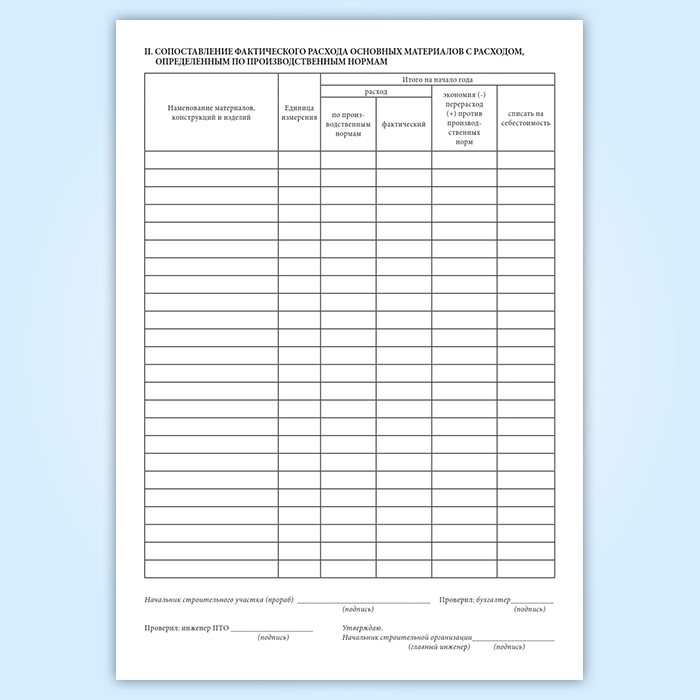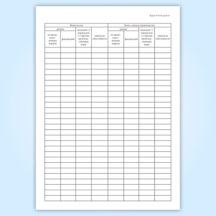 Отчет о расходе основных материалов в строительстве в сопоставлении с расходом, определенным по производственным нормам (форма М-29) в Чите купить