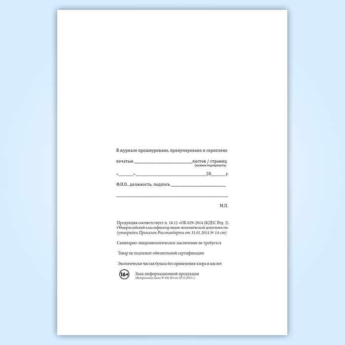 Вы получаете печатную продукцию прошнурованной и c местом для вашей печати в соответствии с действующими нормативными документами: