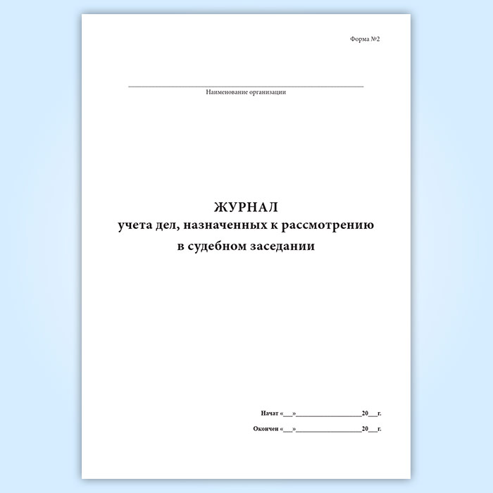 Журнал учета дел, назначенных к рассмотрению в судебном заседании (форма № 2) в Чите купить