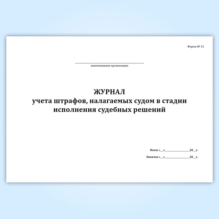 Журнал учета штрафов, налагаемых судом в стадии исполнения судебных решений (форма № 15) в Чите купить