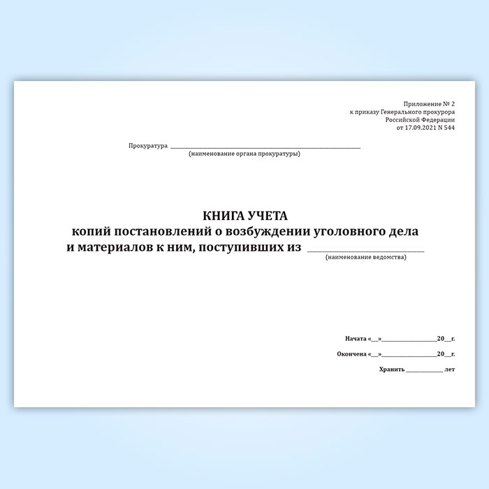 Книга учета копий постановлений о возбуждении уголовного дела и материалов к ним в Чите купить